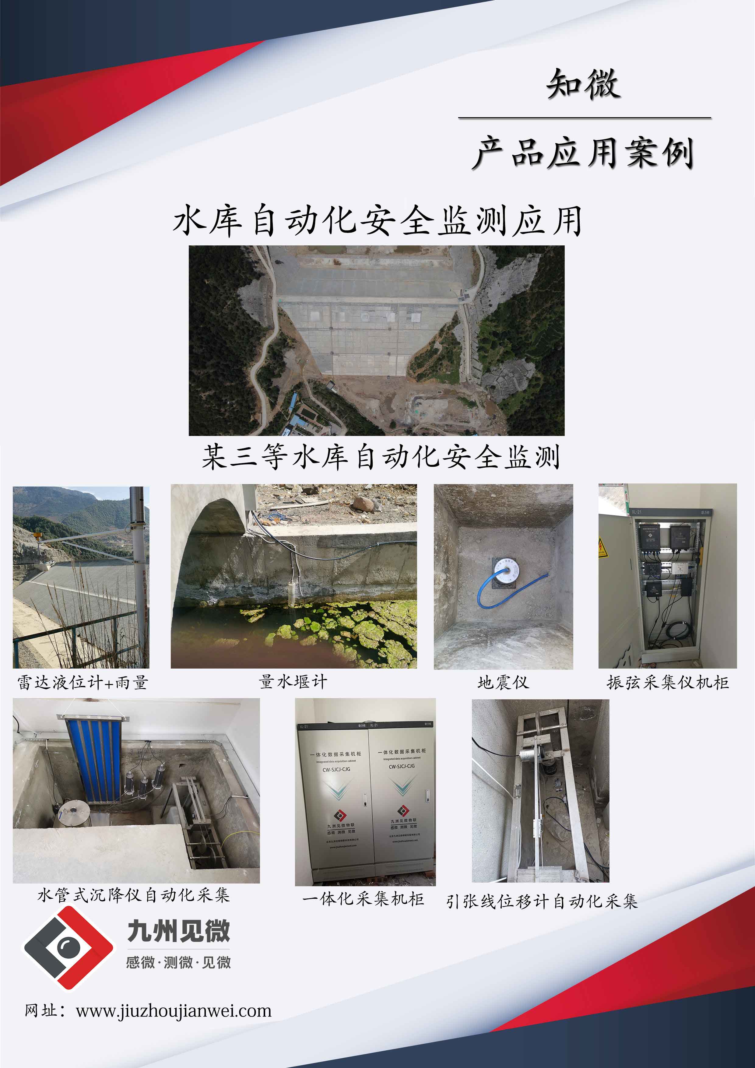 水库安全监测预警系统由水库智能感知、物联网信息通信、云端智慧监控管理平台组成。小型水库的在线监控具有库水位、雨量、图像、渗流等运行数据自动釆集、分析、上报功能,自组网、物联网系统具有全要素采集通信功能,水库安全监测预警系统云平台具有监测数据智能分析预警功能,实现了水库运行状态感知监测、运行态势分析、安全管理、巡视检查在线管理等全面业务支持,既能支持单个水库管理,也能支撑全省、各县水库群管理。